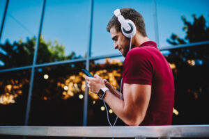 guy listening electronic music via modern headphones and messaging online in social networks.Male meloman searching cool songs on internet website to adding in own playlist on smartphoneBy TREND Entertainment Group / January 16, 2026
